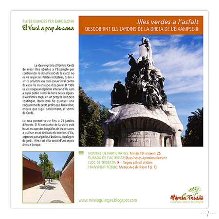 Mireia Teixidó (RUTES GUIADES PER BARCELONA) Catàleg "El Verd a prop de casa" rutes guiades per els jardins de Barcelona Editat en "fitxes"/ format: 21x21cm